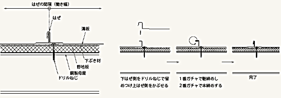 ☑ 縦ハゼ葺き屋根とは、縦葺き屋根の一つで、継ぎ目をハゼで繋ぐ工法
