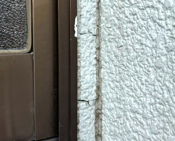 【施工前】外壁(窯業系サイディング)はコーキングの劣化が顕著で、所々ひび割れが見られました。表面の塗膜が水分を吸って脆くなっており、ボロボロの状態でした。