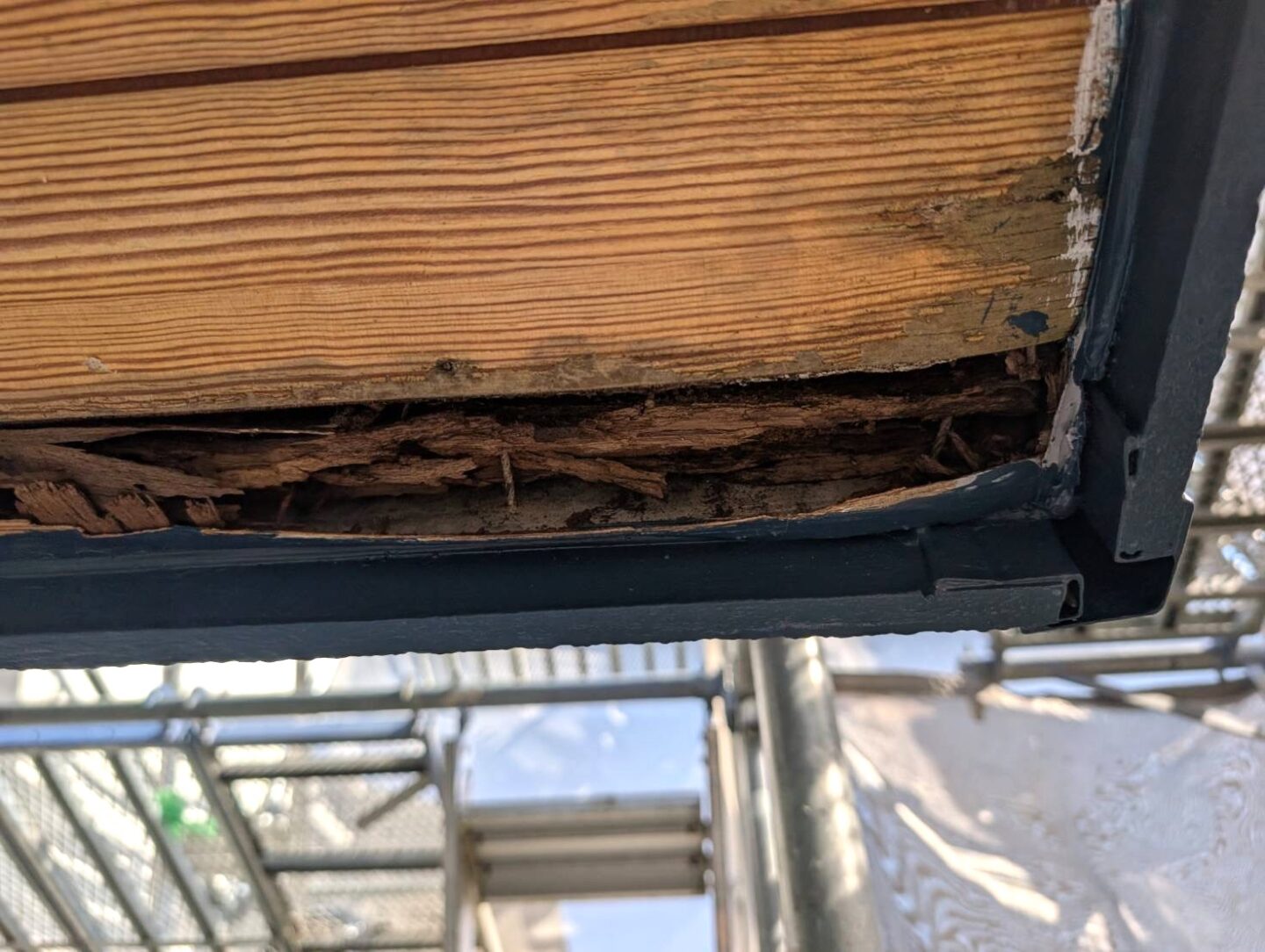 【下地補強】腐食部分を撤去し、下地を補強した上でガルバリウム鋼板でのカバー工法をご提案しました。
