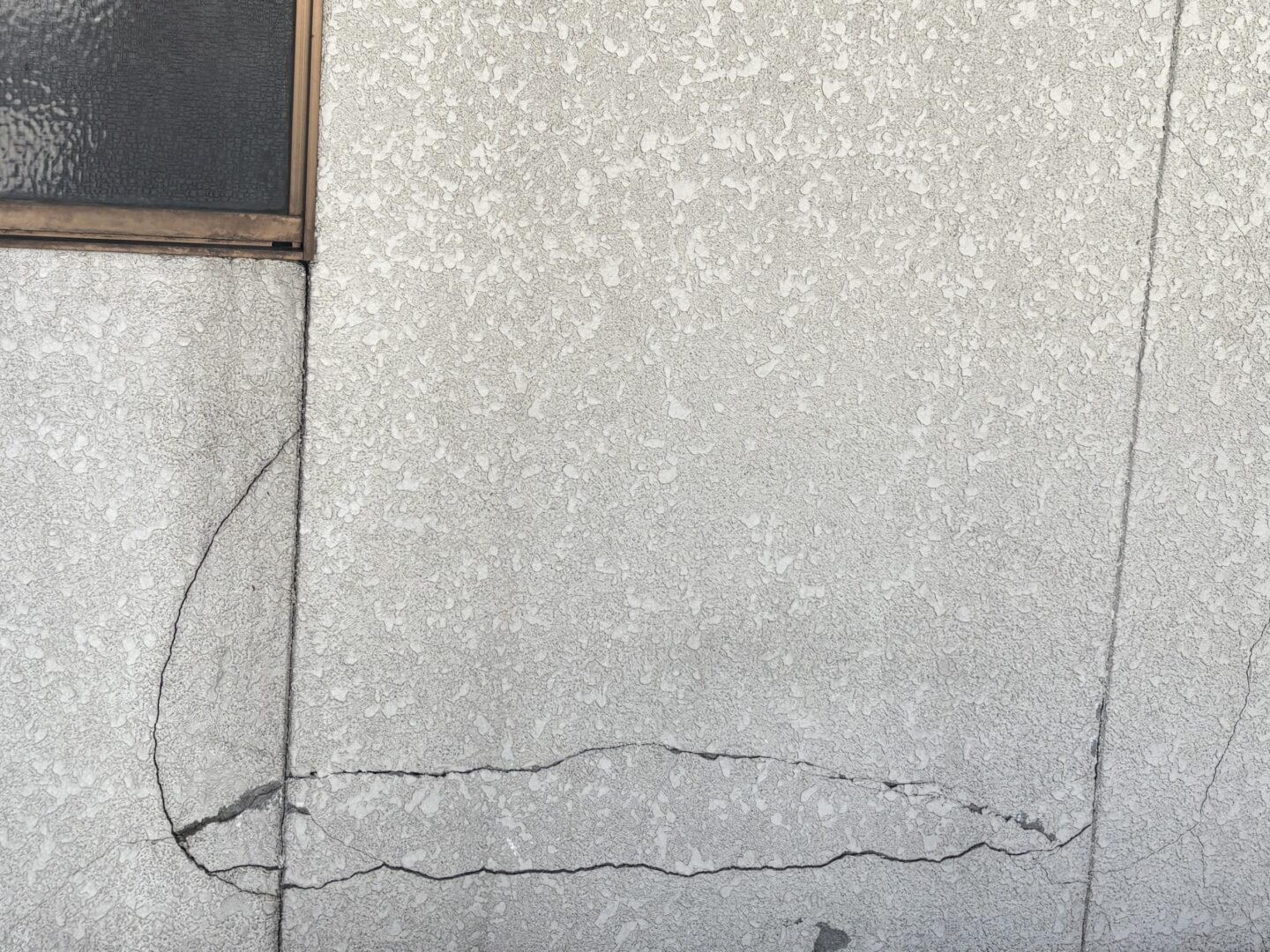 【施工前】外壁はモルタルで、ひび割れがたくさんありました 細いヘアクラックだけでなく、躯体まで届く構造クラックも見られました。