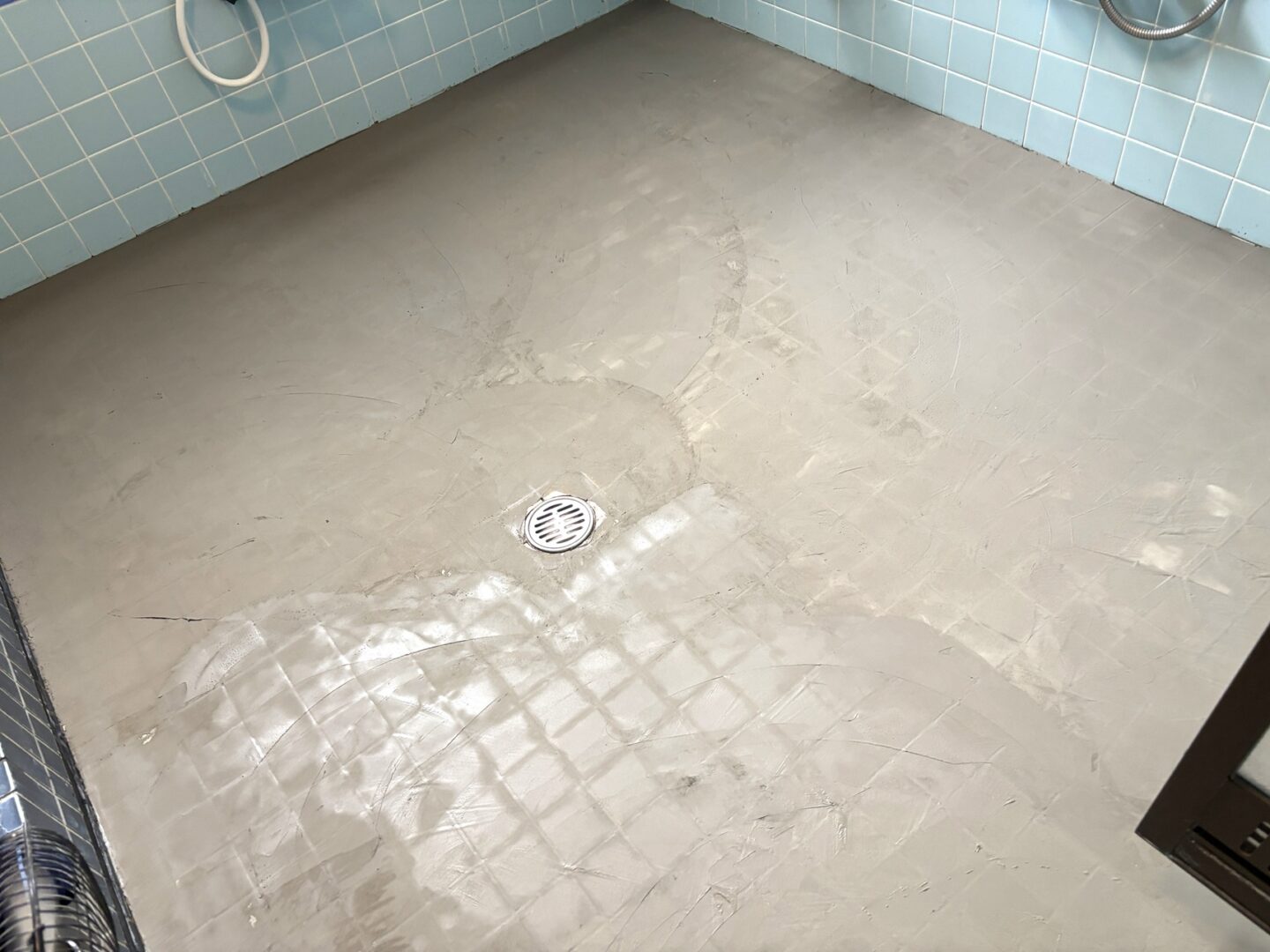 【施工前】在来工法の浴室では、モルタル下地にタイルを張るのが一般的でした。