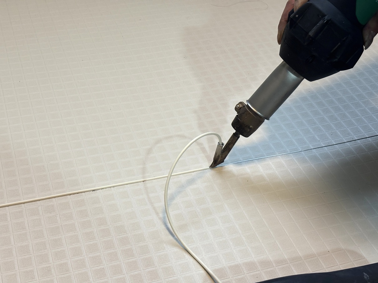 【目地溶接】目地を溶接、端部もコーキングで防水を施します。