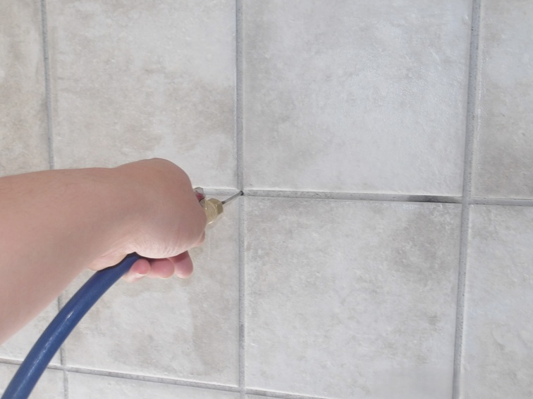 浴室内部は床下から施工することができないので床の目地や壁の目地に細いドリルで穴をあけ、薬剤を注入して侵入経路を徹底的に封鎖しました。