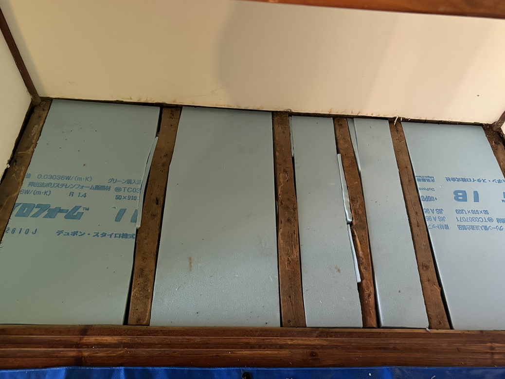 シロアリに食害された床板や断熱材はすべて外し、新しい断熱材を施工しました。